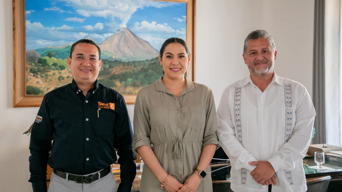 En Casa de Gobierno, sostuve una reunión con el secretario general de la Sección 6 del #SNTE, Miguel Ángel Rivera Hueso y con Juan Manuel Bedolla Ricárdez, representante del Comité Ejecutivo Nacional del SNTE” escribe en sus redes sociales Indira Vizcaíno, gobernadora de Colima.
