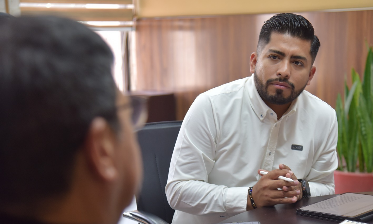 El secretario de la Mesa Directiva de la LXVII Legislatura del estado de Veracruz, diputado Alejandro Porras Marín, recibió al titular de la Dirección General de Cultura de Paz y Derechos Humanos de la Secretaría de Gobierno del Estado, Alejandro Moreno Hernández, con quien dialogó acerca del contenido del Programa Especial de Cultura de Paz y Derechos Humanos, enfocado en la coordinación interinstitucional para lograr metas a corto y mediano plazo en esta materia.