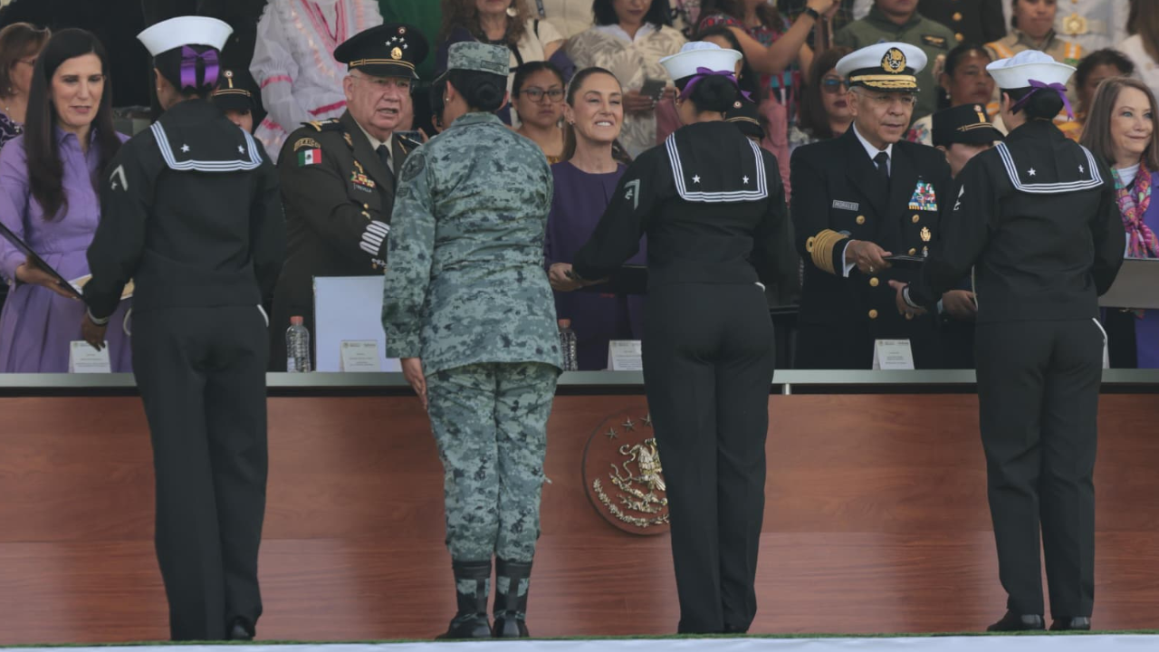 “Las mujeres de las Fuerzas Armadas. Mujeres del Ejército, de la Fuerza Aérea y de la Marina-Armada de México. Mujeres que portan con orgullo el uniforme. Mujeres que sirven a México con honor. Ustedes representan la continuidad de esa historia, de heroínas. Son parte de generaciones que han demostrado que el amor por la patria no tiene género, que el valor no tiene género y que el compromiso con México nace del corazón”, enfatizó.