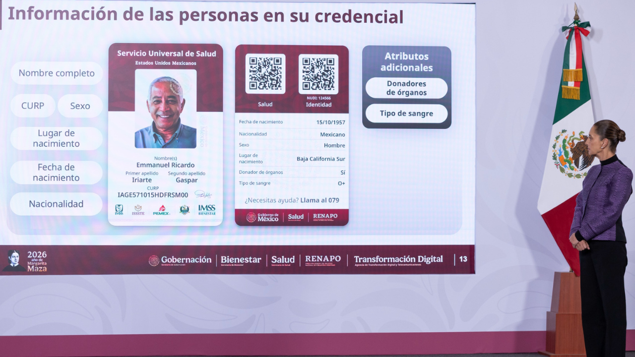La Presidenta Claudia Sheinbaum Pardo anunció que, del 2 de marzo al 31 de diciembre de 2026, se llevará a cabo el proceso de credencialización del Servicio Universal de Salud, identificación que garantizará el derecho a la salud en las instituciones de salud pública del Gobierno de México: Instituto Mexicano del Seguro Social (IMSS), Instituto de Seguridad y Servicios Sociales de los Trabajadores del Estado (ISSSTE), el IMSS Bienestar, así como en los servicios de salud de las Fuerzas Armadas y los Institutos Nacionales de Salud.