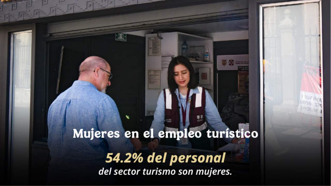 De acuerdo con estimaciones de la Secretaría de Turismo con base en la Encuesta Nacional de Ocupación y Empleo (ENOE), en 2025 las mujeres representaron el 54.2 por ciento del personal ocupado en el sector turístico, con 2 millones 703 mil 543 trabajadoras, lo que confirma su papel predominante en esta actividad económica. Asimismo, 10.6 millones de mujeres extranjeras arribaron a México vía aérea durante ese año, cifra superior en 76 mil a la registrada en 2024.