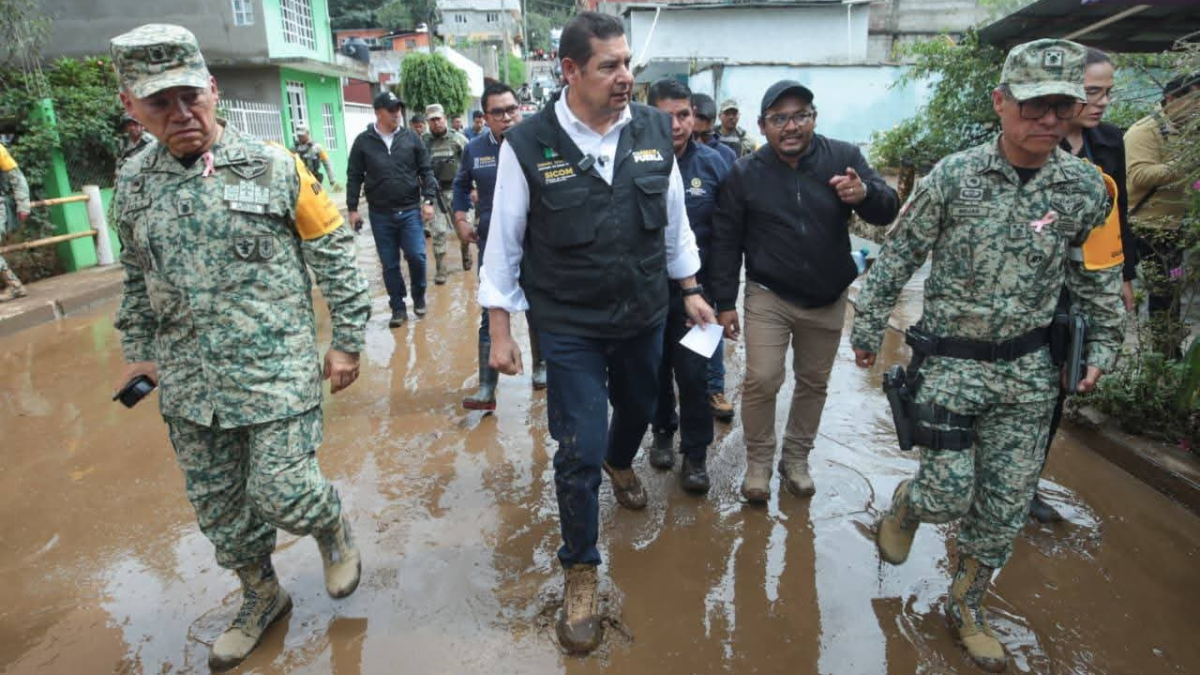 “Recorrimos las zonas afectadas por las intensas lluvias para escuchar, ayudar y coordinar esfuerzos”, escribe en sus redes sociales el gobernador de Puebla Alejandro Armenta Mier.