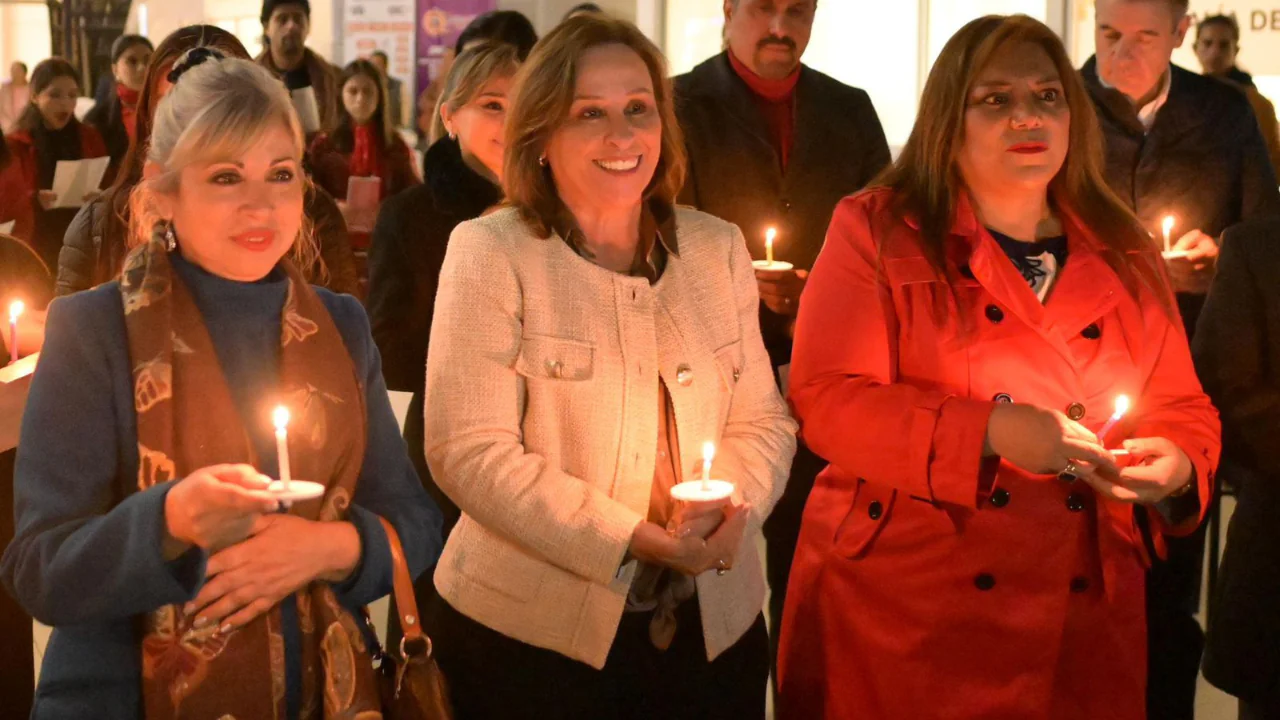 Junto a la directora del organismo, Clara Mora Juárez y sus colaboradores, congregados en la explanada, la Gobernadora hizo el conteo regresivo para apreciar la iluminación del pino y luces propias de las tradiciones.