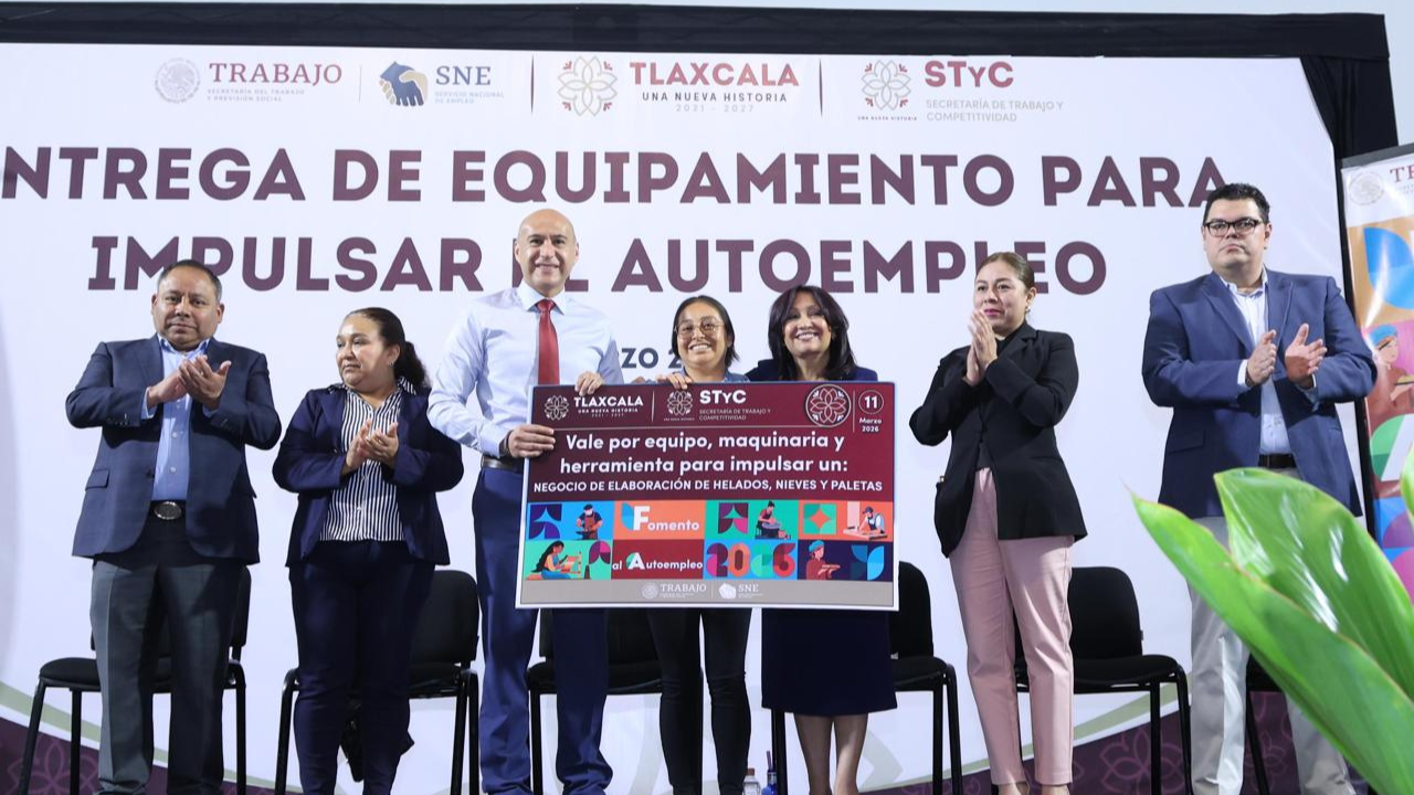 La gobernadora Lorena Cuéllar Cisneros encabezó la “Entrega de Equipamiento para Impulsar el Autoempleo” como parte del subprograma de la Secretaría de Trabajo y Competitividad (STyC), a través del Servicio Nacional de Empleo Tlaxcala (SNET), estrategia que brinda herramientas para iniciar o consolidar un negocio propio y fomenta la formalización, generación de empleos dignos y el impulso de la economía local.
