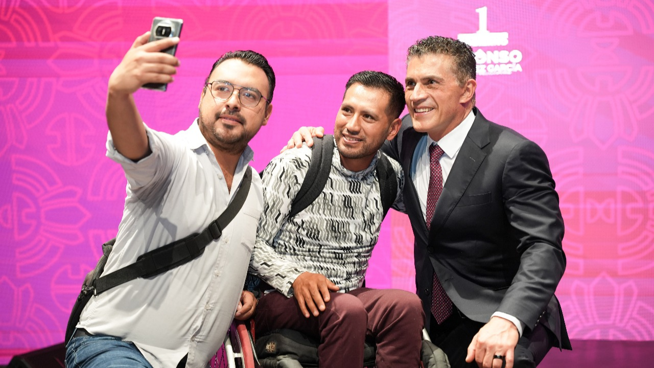 Las expresiones de apoyo se multiplicaron a lo largo de la jornada. Una de las más significativas fue la de Domingo Morales Corona, originario de San Pablo del Monte y representante del sector de la discapacidad y la diversidad sexual, quien aún con dificultades -pues usa silla de ruedas-, logró subir al escenario para felicitar personalmente al edil capitalino. Su aplauso emocionado se sumó al de cientos de voces que lo acompañaron cada momento.