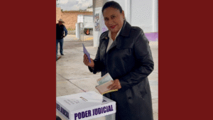 Ana Lilia Rivera emitió su voto en la comunidad de Cuaula, municipio de Calpulalpan, donde después de emitir su voto recordó que la elección judicial fue producto de una reforma constitucional como un mandato del pueblo de México para eliminar privilegios, defender la justicia, la honestidad, la honradez y erradicar el nepotismo y la corrupción en el Poder Judicial.