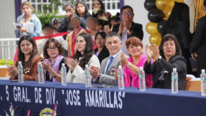 Asimismo, reconoció el papel fundamental de madres, padres y abuelos, así como la entrega del personal docente. “Detrás de cada graduado hay una madre que se desveló, un padre que confió, una familia que creyó en un mejor futuro. Y a ustedes, maestras y maestros, gracias por enseñar con amor y por formar no solo la mente, sino también el corazón”, recalcó.