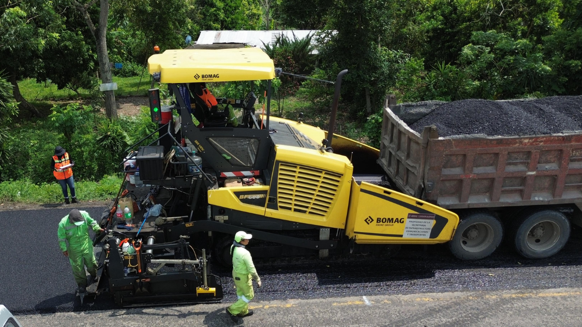 Estos trabajos se ejecutan con uno de los dos trenes de pavimentación con los que cuenta el estado de Veracruz, lo que permite agilizar las labores de mejoramiento de la carpeta asfáltica y fortalecer la seguridad y comodidad de los usuarios.