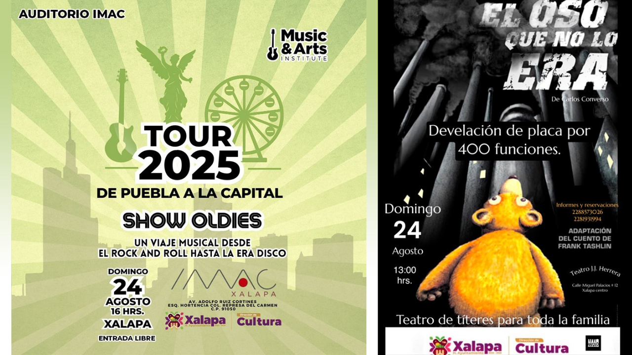 El domingo, en el Parque Juárez, se desarrollará el programa “Domingos Familiares”, desde las 12:00 horas. En el Teatro J. J. Herrera, a las 13:00 horas, se presentará la obra “El Oso que no lo era”, de Carlos Converso. Además, se develará una placa por sus 400 funciones. A esta misma hora, en el Museo de la Música Veracruzana, se presentará la Orquesta Pauta Nueva con una “Tarde de danzón”.