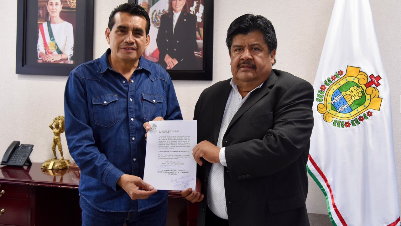 • Entrega el presidente de la Junta de Coordinación Política a Silverio Quevedo Elox nombramiento de coordinador de Comunicación Social.