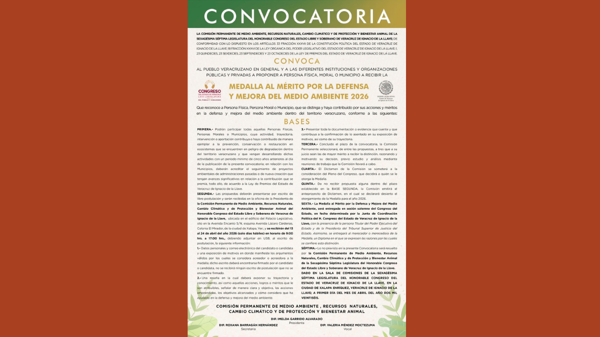 #VERACRUZ #MEDIOAMBIENTE #CONGRESOVER #MERITOAMBIENTAL #CONVOCATORIA2026 #XALAPA #SUSTENTABILIDAD #LEGISLATURA #VERACRUZDEMODA #NACIONAL