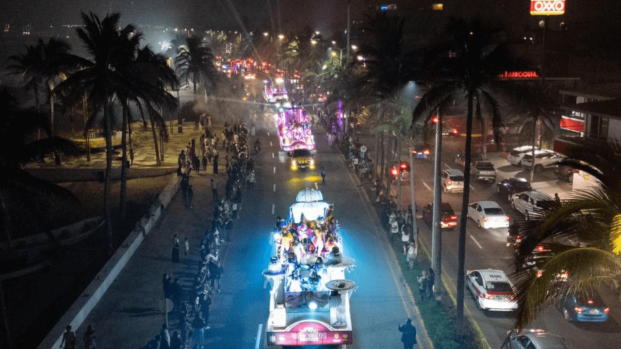 Pasadas las 01:45 horas, el Gran Desfile con carros alegóricos partió del bulevar Ruíz Cortines en dos rutas, hacia la izquierda, en dirección al Malecón, o hacia la derecha, rumbo a Boca del Río.