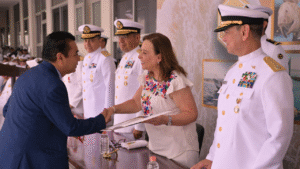 A la ceremonia asistieron el comandante de la Primera Región Naval, Carlos Eduardo L’Eglise Escamilla; la vicepresidenta del Congreso, Tania María Cruz Mejía; y la fiscal general del Estado, Verónica Hernández Giadáns.