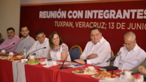 Durante reunión con integrantes de la Cámara Mexicana de la Industria de la Construcción (CMIC), delegación Veracruz Norte, destacó que estas obras forman parte de la estrategia para mejorar la conectividad, elevar la calidad de vida y generar empleos en beneficio de las y los veracruzanos.