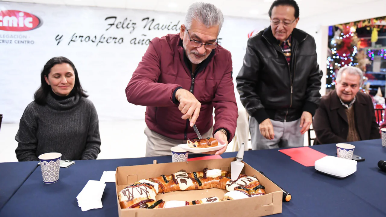 Durante una convivencia en la que partió la tradicional Rosca de Reyes con integrantes de la Cámara Mexicana de la Industria de la Construcción (CMIC) Delegación Veracruz-Centro, el Edil reiteró que la obra pública mejora la movilidad, la seguridad, eleva la plusvalía de los bienes y hace de Xalapa un mejor municipio.