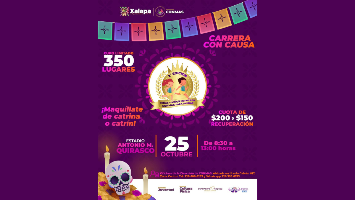 Con el propósito de fomentar la solidaridad y la participación de la niñez xalapeña en actividades de asistencia social, el Ayuntamiento de Xalapa invita a participar en la segunda edición de la carrera infantil “Niñas y Niños Unidos con Conmas para Ayudar”.