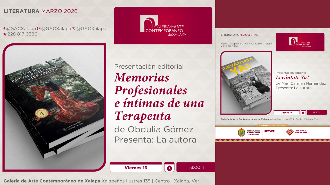 La Secretaría de Cultura de Veracruz (SECVER) invita al público general a las presentaciones editoriales que se llevarán a cabo durante el mes de marzo, en el Auditorio de la Galería de Arte Contemporáneo de Xalapa (GACX). La entrada es libre.