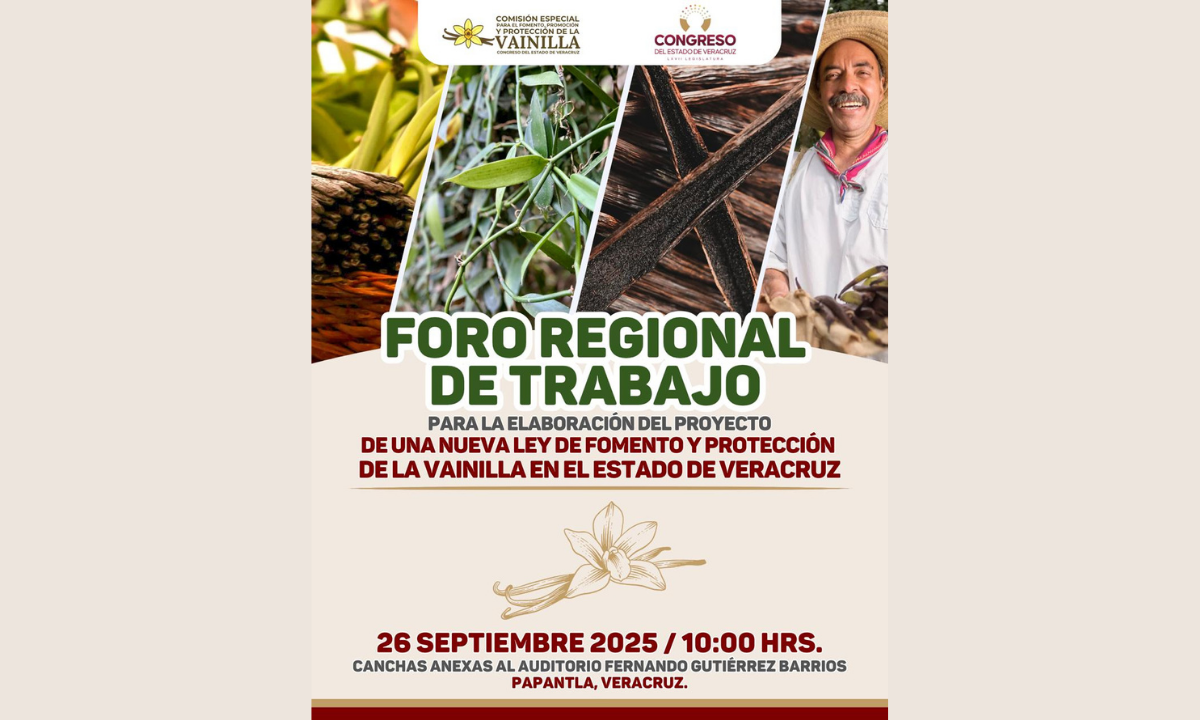 Con el objetivo de elaborar un nuevo proyecto de Ley de Fomento y Protección de la Vainilla para el estado de Veracruz, la diputada Miriam García Guzmán, presidenta de la Comisión Especial para el Fomento, Promoción y Protección de la Vainilla de la LXVII Legislatura, dio a conocer la realización de tres Foros Regionales que permitirán recopilar información para la integración de la respectiva propuesta.