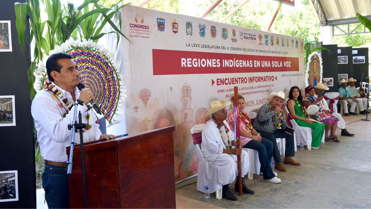 “Hoy las personas indígenas ya no somos letra muerta, sino sujetos de derecho público, parte de la agenda nacional y estatal, sujetos activos, de libre determinación, pensantes, capaces de transformar la vida pública”, aseveró el presidente de la Junta de Coordinación Política (Jucopo) del Congreso del Estado, diputado Esteban Bautista Hernández, al encabezar el Encuentro Informativo sobre la reforma al Artículo 5° de la Constitución Política del estado, en la cabecera municipal de Coyutla, en la zona norte de la entidad.