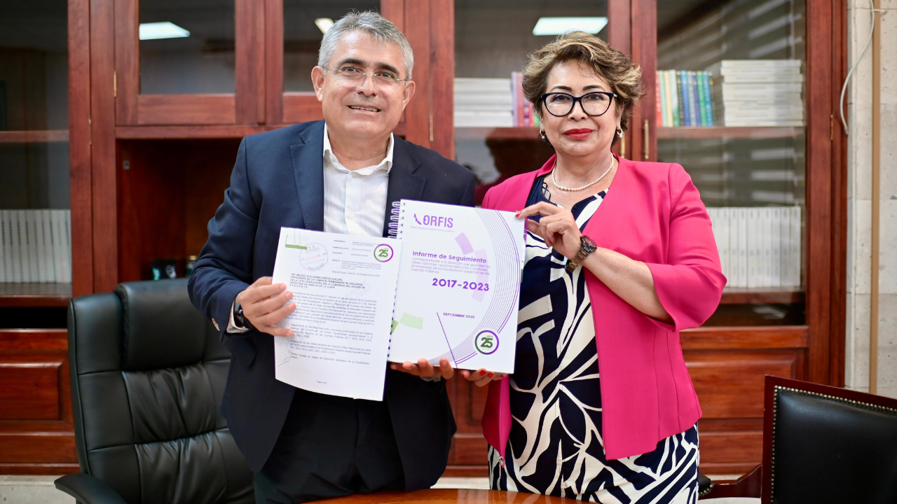 La Comisión Permanente de Vigilancia, por conducto de su presidente, diputado Miguel Guillermo Pintos Guillén, recibió de la titular del Órgano de Fiscalización Superior del estado (Orfis), auditora Delia González Cobos, el Informe de Seguimiento de las Cuentas Públicas 2017-2023, dando así cumplimiento a lo dispuesto en el Artículo 61 de la Ley de Fiscalización Superior y Rendición de Cuentas de Veracruz.