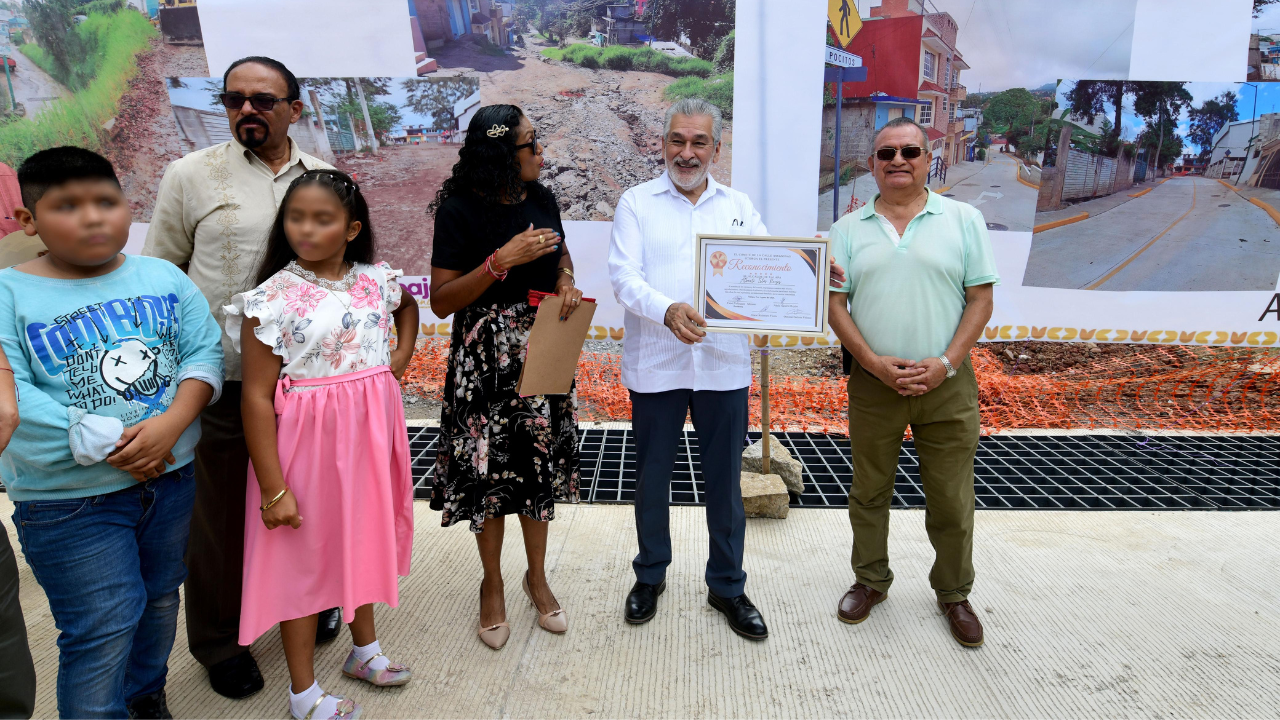 La obra incluyó en algunos tramos red de agua entubada y drenaje sanitario, así como murete, barandal, alumbrado público, guarniciones, banquetas y 2 mil 382 metros cuadrados de concreto hidráulico.