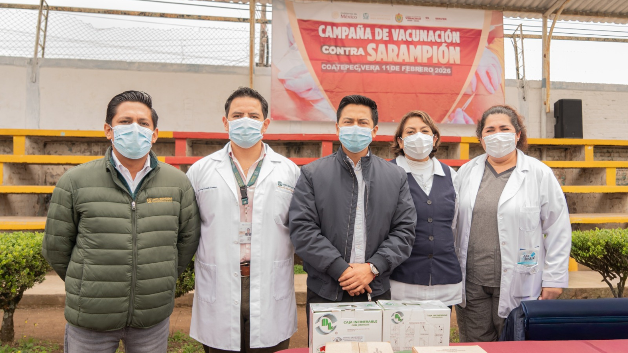 Acompañado por el doctor Jaime Lozano, coordinador regional del IMSS-Bienestar; la doctora Adriana Santos, directora del Centro de Salud de Coatepec; y Amelia Colorado, jefa de enfermeras, el alcalde dirigió un mensaje a la población: “Hoy me encuentro aquí en el Deportivo Adolfo López Mateos, llevando a cabo una campaña de vacunación en contra del sarampión y también de otras enfermedades, como es la influenza. Estamos invitando a toda la gente a que venga, que acuda”.