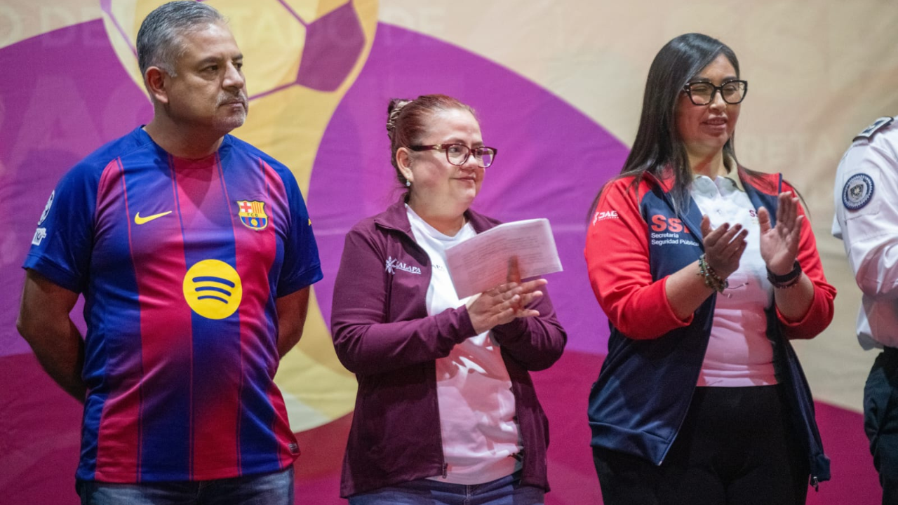 Acompañada por el Síndico Único, Dr. Marco Aurelio Martínez Sánchez, y el exfutbolista profesional Édgar Andrade Rentería, destacó que este evento, organizado en coordinación con la Secretaría de Seguridad Pública (SSP), es resultado del esfuerzo conjunto de distintas áreas que “creen en el deporte como el principal aliado para alejar a nuestras niñas, niños y jóvenes de las adicciones, de la violencia y del sedentarismo”.